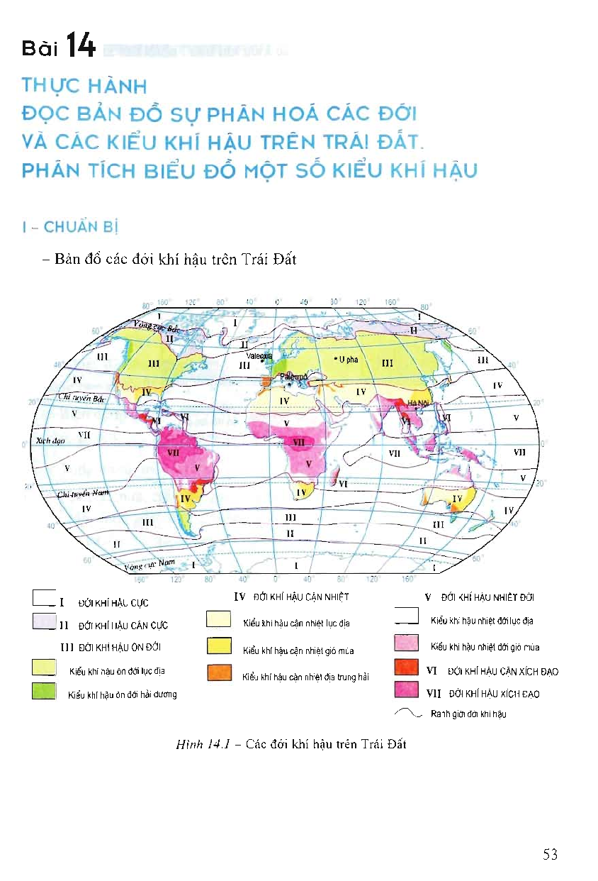 Bài 14: Thực hành: Đọc bản đồ sự phân hóa các đới và các kiểu khí hậu trên Trái Đất. Phân tích biểu đồ một số kiểu khí hậu