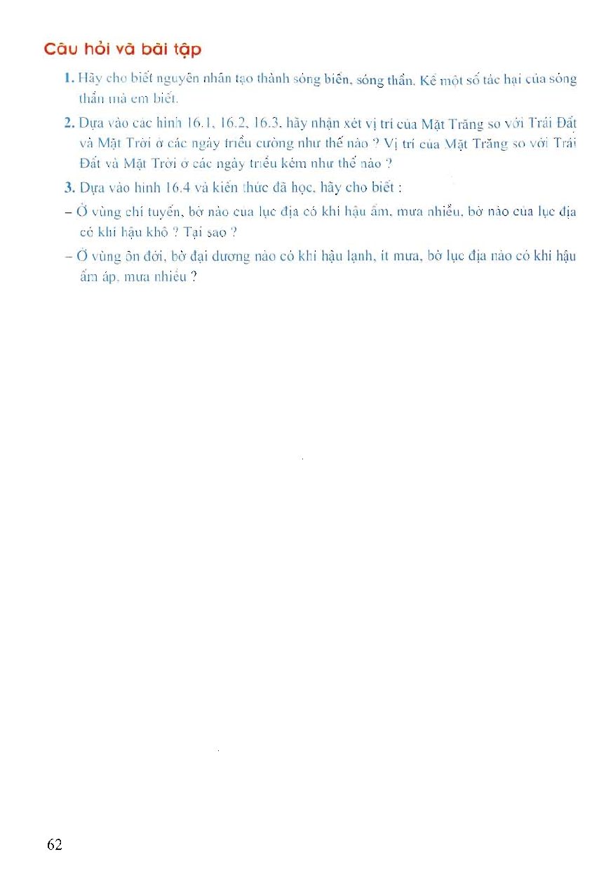 Bài 16: Sóng. Thủy Triều. Dòng Biển | Địa Lí 10 (Trang 59 - 62 SGK)