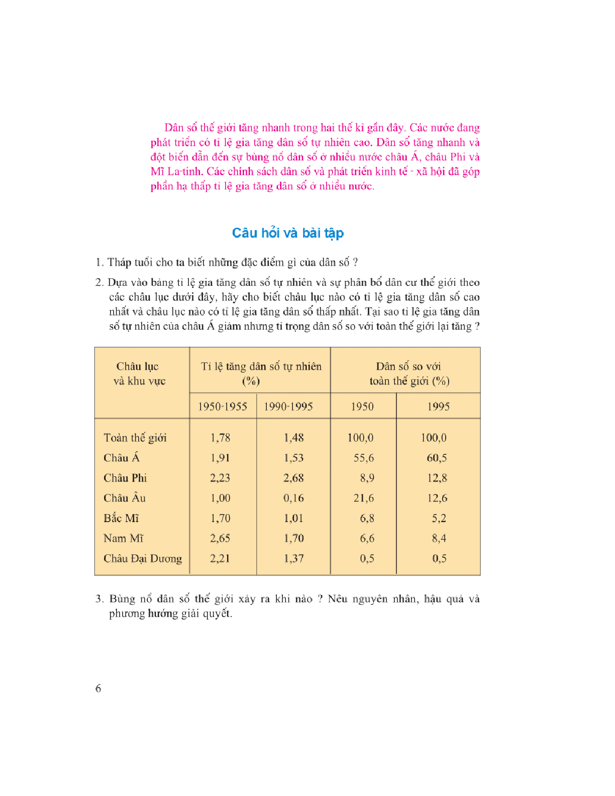 Sách Giáo Khoa Địa Lí Lớp 7 - Bài 1: Dân Số
