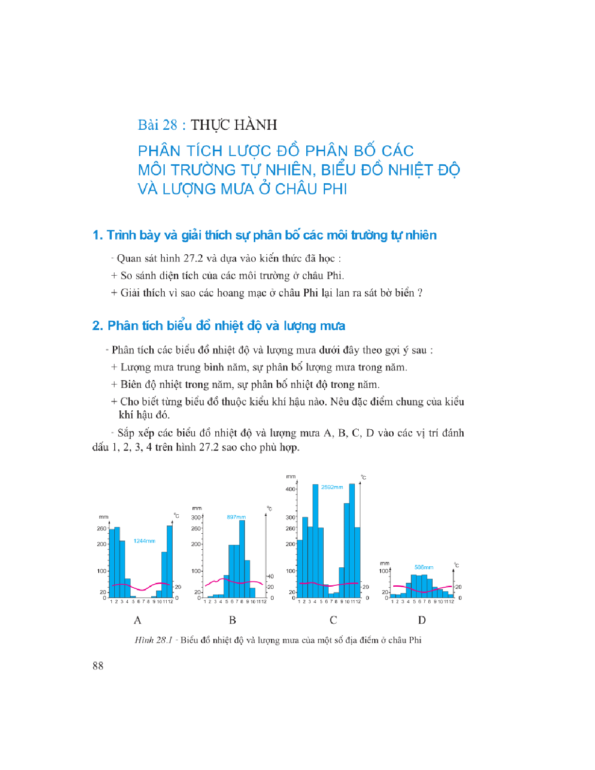 Bài 28: Thực hành: Phân tích lược đồ phân bố các môi trường tự nhiên, biểu đồ nhiệt độ và lượng mưa ở châu Phi