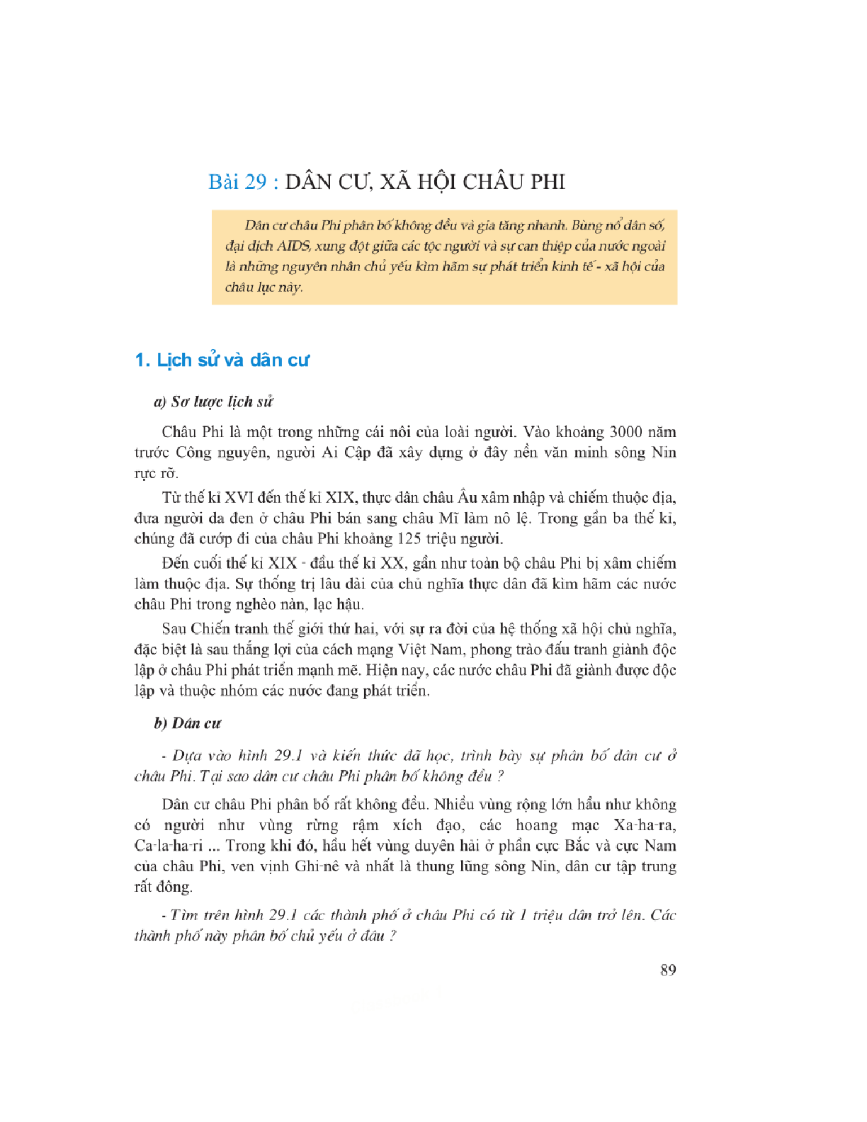 Địa Lý Lớp 7 Bài 29 – Dân Cư Xã Hội Châu Phi – Trang 89 - 92