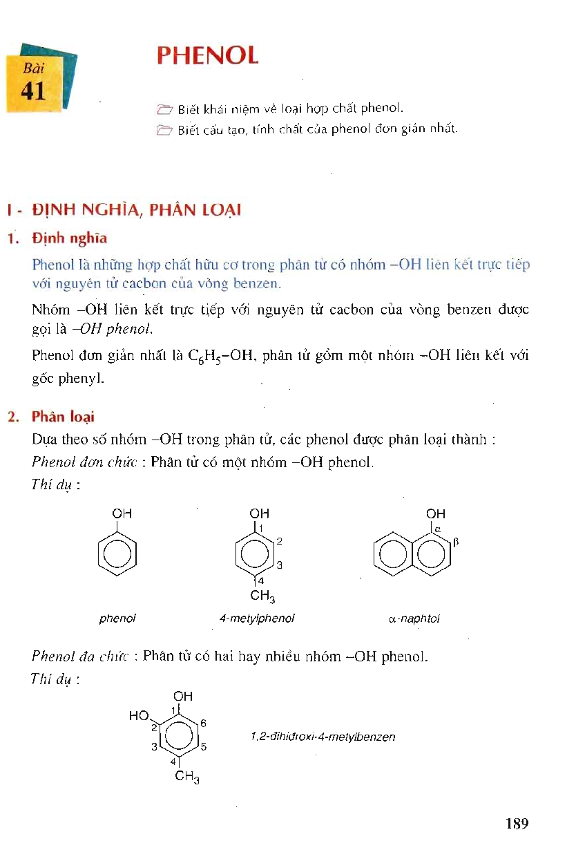 Sách Giáo Khoa Hóa Học Lớp 11 Cơ Bản - Bài 41: Phenol