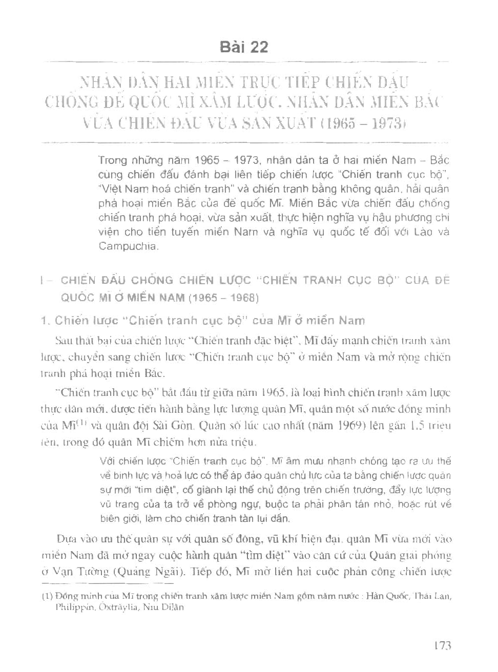 Bài 22: Nhân dân hai miền trực tiếp chiến đấu chống đế quốc Mĩ xâm lược, nhân dân miền bắc vừa chiến đấu vừa sản xuất (1965-1973)