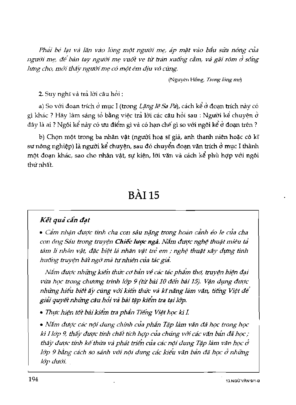 Sách Giáo Khoa Ngữ Văn Lớp 9 Tập 1 - Bài 15. Chiếc Lược Ngà
