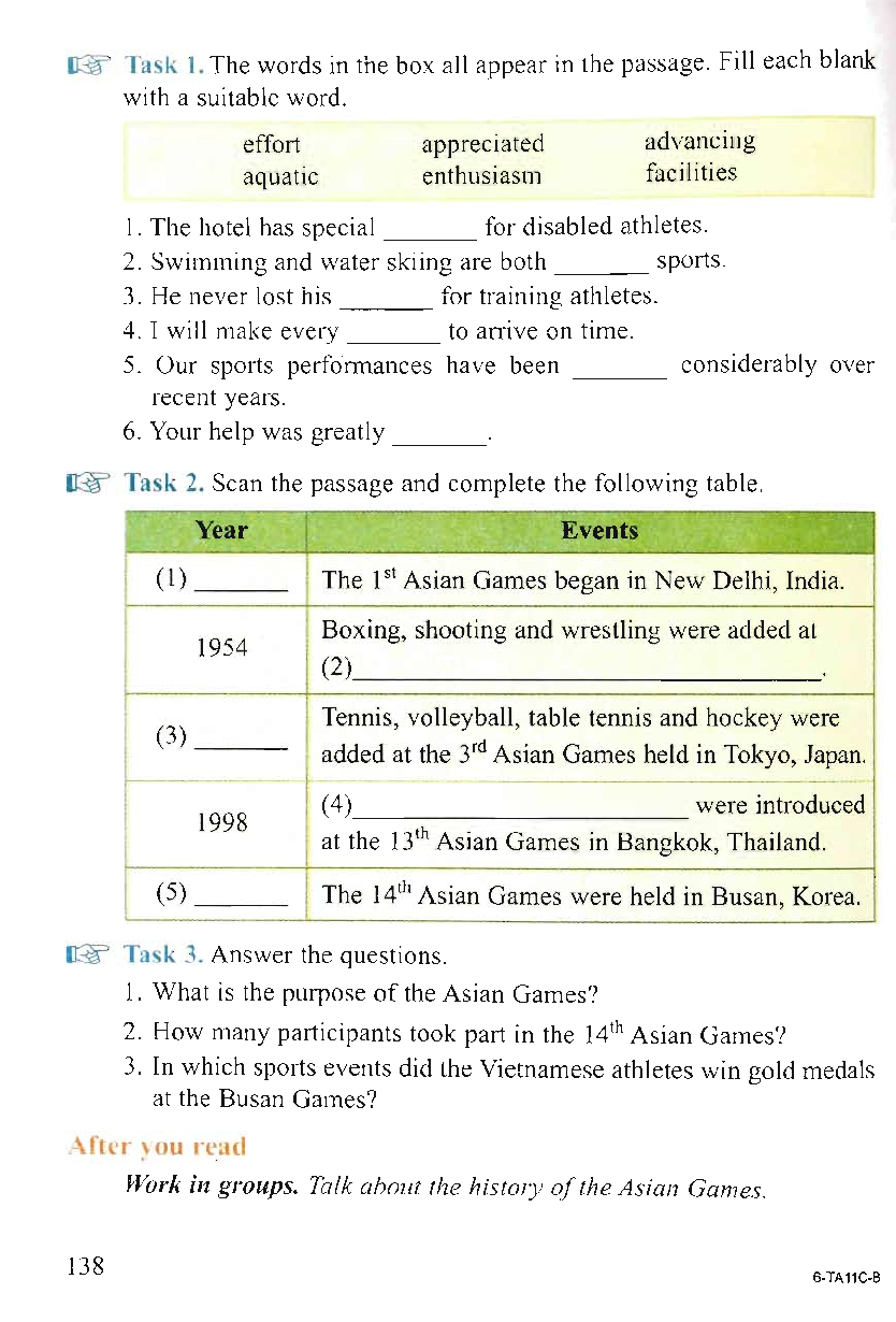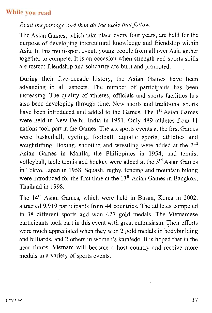 Sách Giáo Khoa Tiếng Anh 11 - Unit 12: The ASIAN Games
