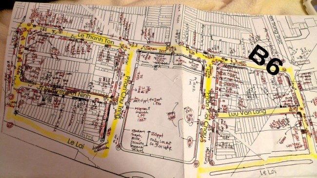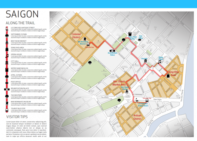 SLAB đã phát triển 1 dạng bản đồ có tính chất gợi ý nhằm nghiên cứu những can thiệp vào hệ thống vỉa hè của thành phố Hồ Chí Minh. Sử dụng cách diễn đạt của bản đồ du lịch, chúng tôi hình dung ra một hệ thống có thể thay thế trong việc bán hàng tự động tại vỉa hè chứ không phải là xóa bỏ. Với những phát hiện trong nghiên cứu về du lịch của chúng tôi, một cách để có thể giúp khách du lịch di chuyển một cách tuyệt vời nhất tại Hồ Chí Minh, đó chính là những con đường đi bộ và cuộc sống vỉa hè. Hiện nay, hầu hết các khách du lịch đến Việt Nam không ở lâu trong thành phố mà chỉ đến một vài điểm được xác định trên bản đồ du lịch. Bản đồ của chúng tôi không chỉ kết nối các điểm du lịch thông thường, mà còn giúp khách du lịch xác định một cách đầy đủ hơn những khu vực dành cho người đi bộ và khu vực lân cận khác. Một số thách thức đặt ra là liệu những người bán dạo có thể phục vụ cho các tuyến du lịch đó hay không và tác động của các tuyến đường đến các khu vực lân cận như thế nào.