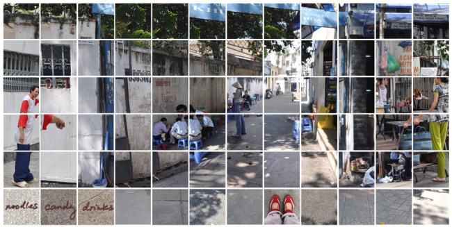 Chúng tôi chụp hàng ngàn tấm ảnh cũng như các đoạn video trong chuyến đi thực địa. Nhiếp ảnh không chỉ là cách để ghi chép các hiện tượng như các biểu tưởng trong không gian vỉa hè hay sự chiếm lĩnh không gian, nhưng cũng đồng thời quan trọng đối với tiến trình thiết kế ở một số khía cạnh. Chúng tôi khám phá không gian với máy ảnh. Ví dụ, nỗ lực cố gắng chọn vị trí để có những tấm ảnh chính xác với những góc ống kính và khuôn hình khác nhau đã giúp chúng tôi nhận ra tỷ lệ gần gũi và góc nhìn từ-thấp-tới-mặt đất của cuộc sống vỉa hè ở Việt Nam. Nhiếp ảnh cũng cho phép những quan sát tổng hợp về những khung cảnh và tình huống trên vỉa hè. Chúng tôi cũng tìm thấy trong nhiết ảnh một công cụ mạnh mẽ để kéo người xem vào trong khung cảnh.