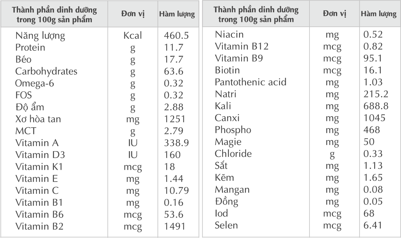 - FOS – Chất xơ hòa tan: Giúp cải thiện tiêu hóa