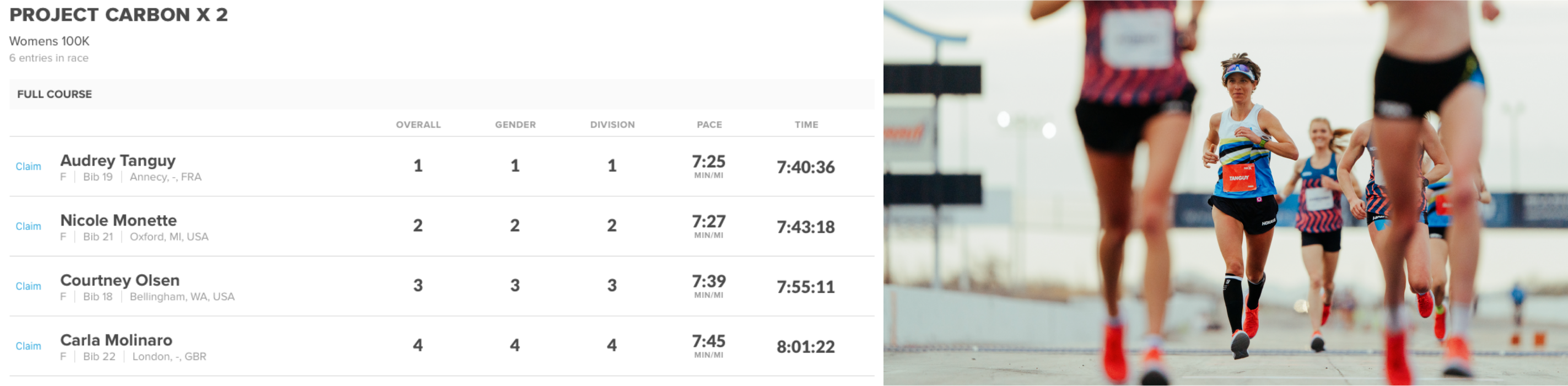 Vào đầu năm 2021, số người thử thách cự ly 100 km lại tăng đáng kể. HOKA ký hợp đồng với Jim Walmsley để tham gia thử thách 100 km và mang đôi Carbon X 2. Công nghệ PROFLY được sử dụng trong đế giữa của giày cũng là ứng dụng dùng để tri ân sự ra đời của dòng giày Mach 4. Mặc dù Jim Walmsley đã không thành công trong việc chinh phục thử thách, nhưng trong chuỗi thử thách này, chúng ta có thể nhìn thấy sự tham gia của rất nhiều nữ VĐV. Điều đó cho thấy các nữ vận động viên không ngừng nỗ lực thử thách bản thân, và tất cả các cuộc đấu tranh của phụ nữ cho quyền thể thao và môi trường thể thao cũng vậy.