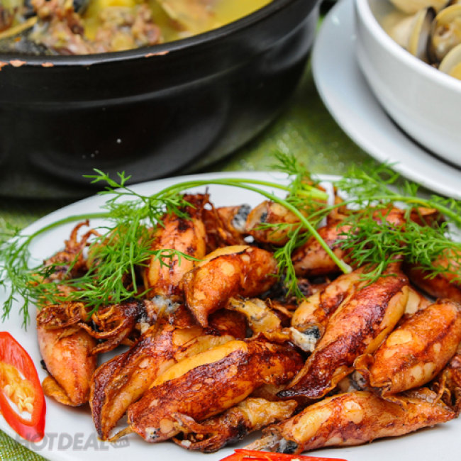 Set ăn mà Hồng Hạc giới thiệu trong lượt deal lần này của Hotdeal ngoài món Baba om chuối đậu thơm nức mũi thực khách còn có cơ hội thưởng thức thêm 02 món hải sản hấp dẫn khác, đó là ngao hấp và mực trứng chiên.