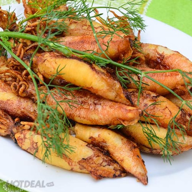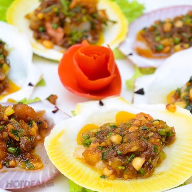 Set ăn mà Hồng Hạc giới thiệu trong lượt deal lần này của Hotdeal ngoài món Baba om chuối đậu thơm nức mũi thực khách còn có cơ hội thưởng thức thêm các món hải sản hấp dẫn khác, đó là sò huyết đốt rượu, hải sâm xào nấm, mực trứng chiên, điệp nướng mỡ hành.