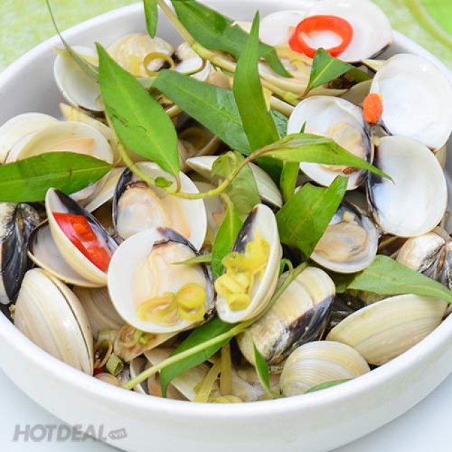 - Chi tiết Set ăn :1. Sò huyết đốt rượu 0,5kg hoặc ngao hấp (1kg) 2. Hải sâm xào nấm 01 đĩa3. Mực trứng chiên 0,5kg4. Điệp nướng mỡ hành 06 con5. Salad trộn 01 đĩa6. Ba ba nấu chuối đậu 01 kg