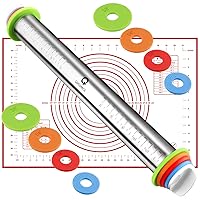 Rolling Pin and Pastry Baking Mat Set, Rolling Pins with Adjustable Thickness Rings, Stainless Steel Dough Roller for Baking Fondant, Pizza, Pie, Pastry, Pasta, Cookies (Red Mat) (6875) . Mỹ 759,973đ