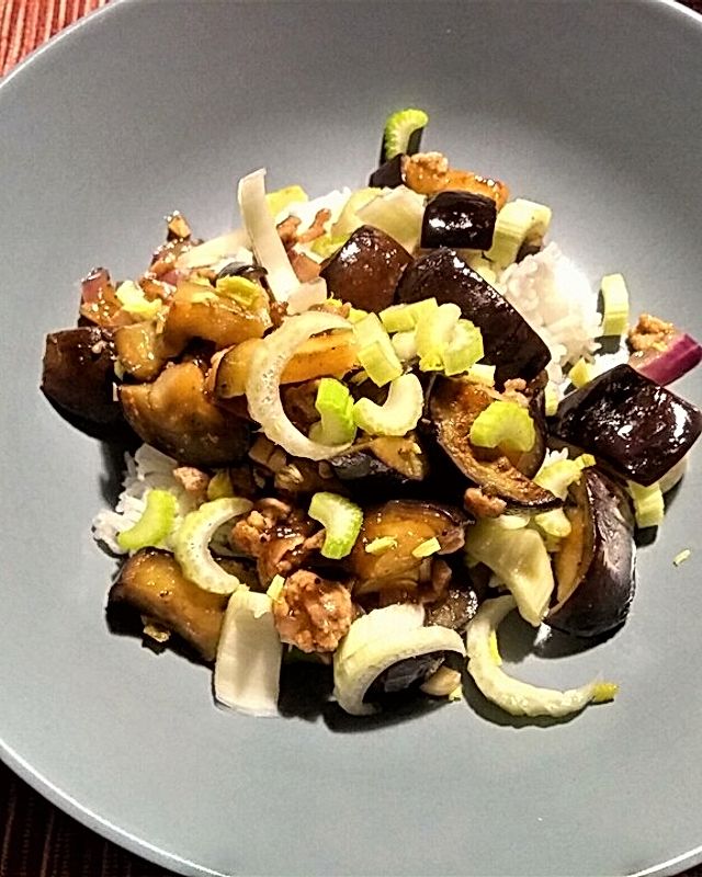Durchschnittliche Bewertung: 5 von 5 Sternen von 5 Sternen (2 Bewertungen) Geschmorte Chinesische Auberginen mit Hackfleisch
