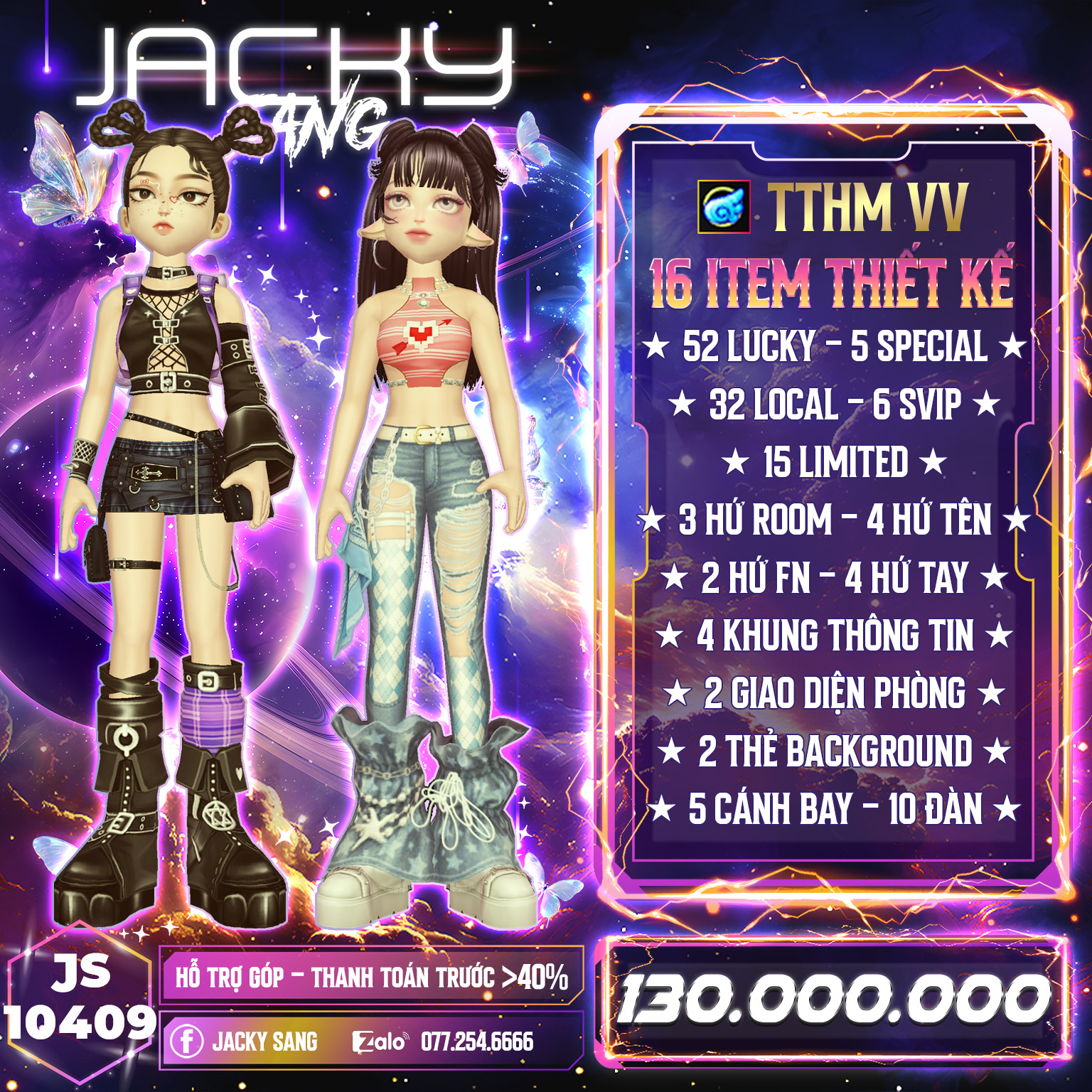 MS: 10410 +20 ảnh Level 5 Local 31 Icon 1 (TTHM) Special 7 Lucky 42 Thiết kế 28 Giới tính Nữ Đầy Đủ Thông Tin 200,000,000đ XEM Ở FB