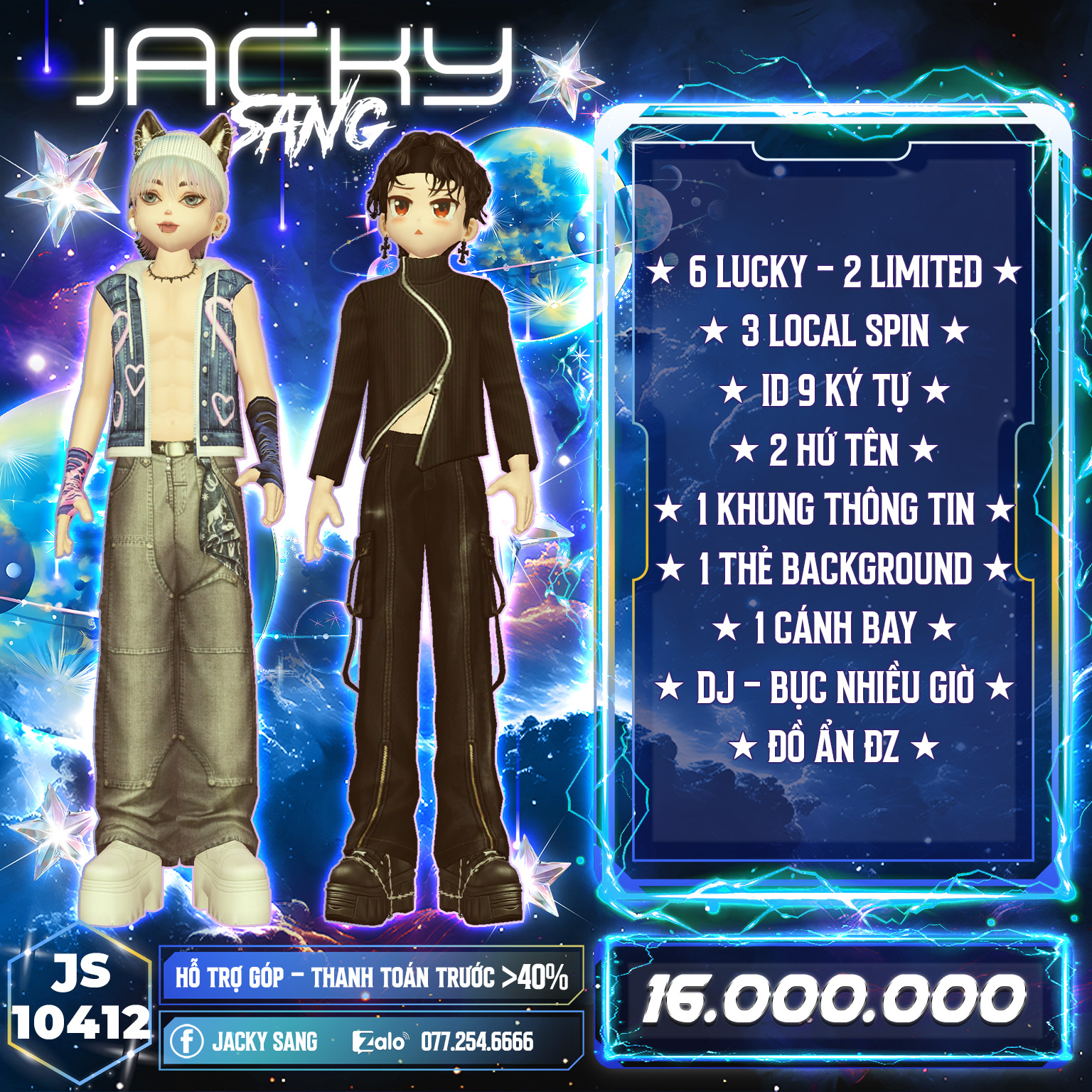 MS: 10412 +11 ảnh Level 5 Local 3 Icon 0 Special 0 Lucky 6 Thiết kế 0 Giới tính Nam Đầy Đủ Thông Tin 16,000,000đ XEM Ở FB