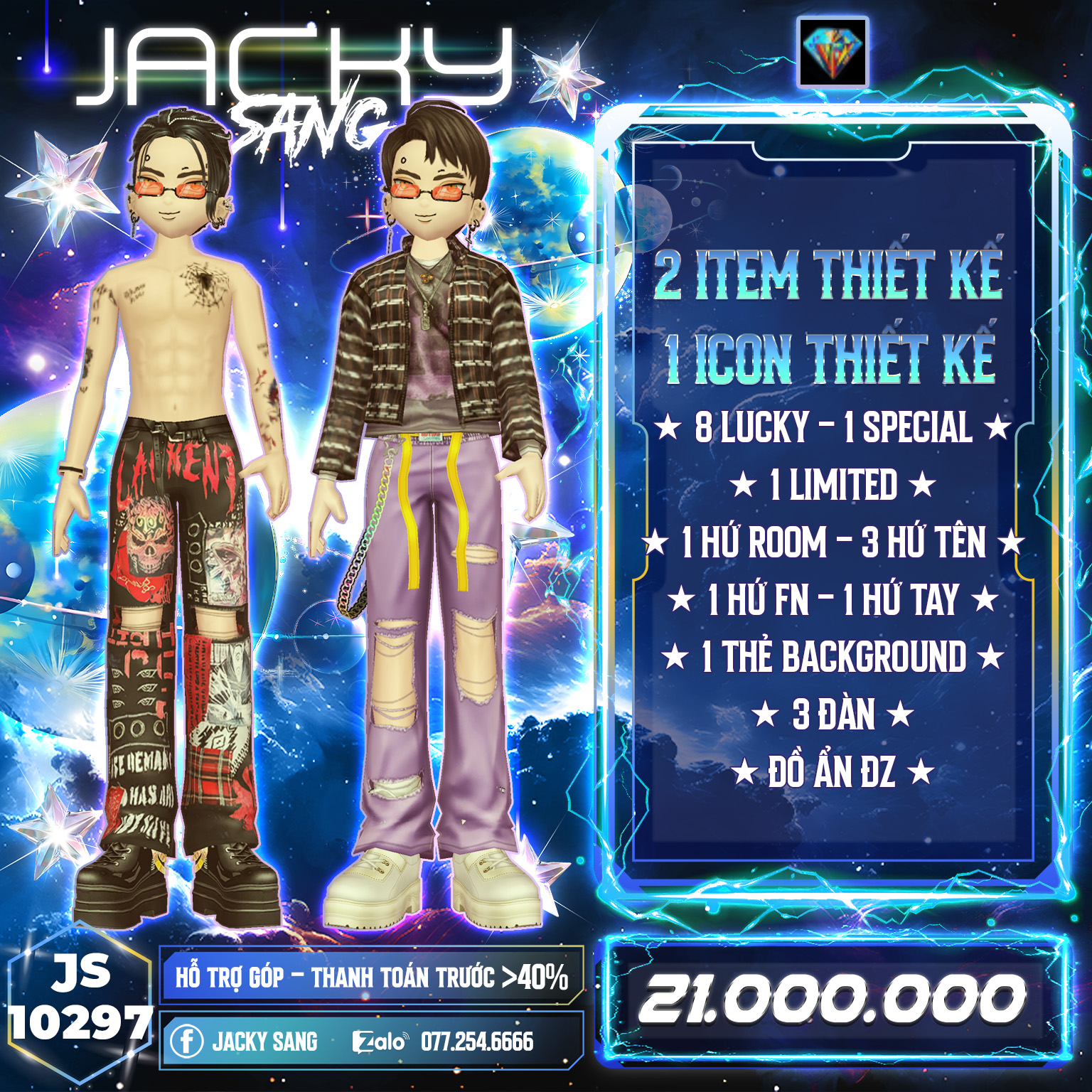 MS: 10297 +11 ảnh Level 73 Local 0 Icon 1 Special 1 Lucky 8 Thiết kế 2 Giới tính Nam Đầy Đủ Thông Tin 21,000,000đ XEM Ở FB