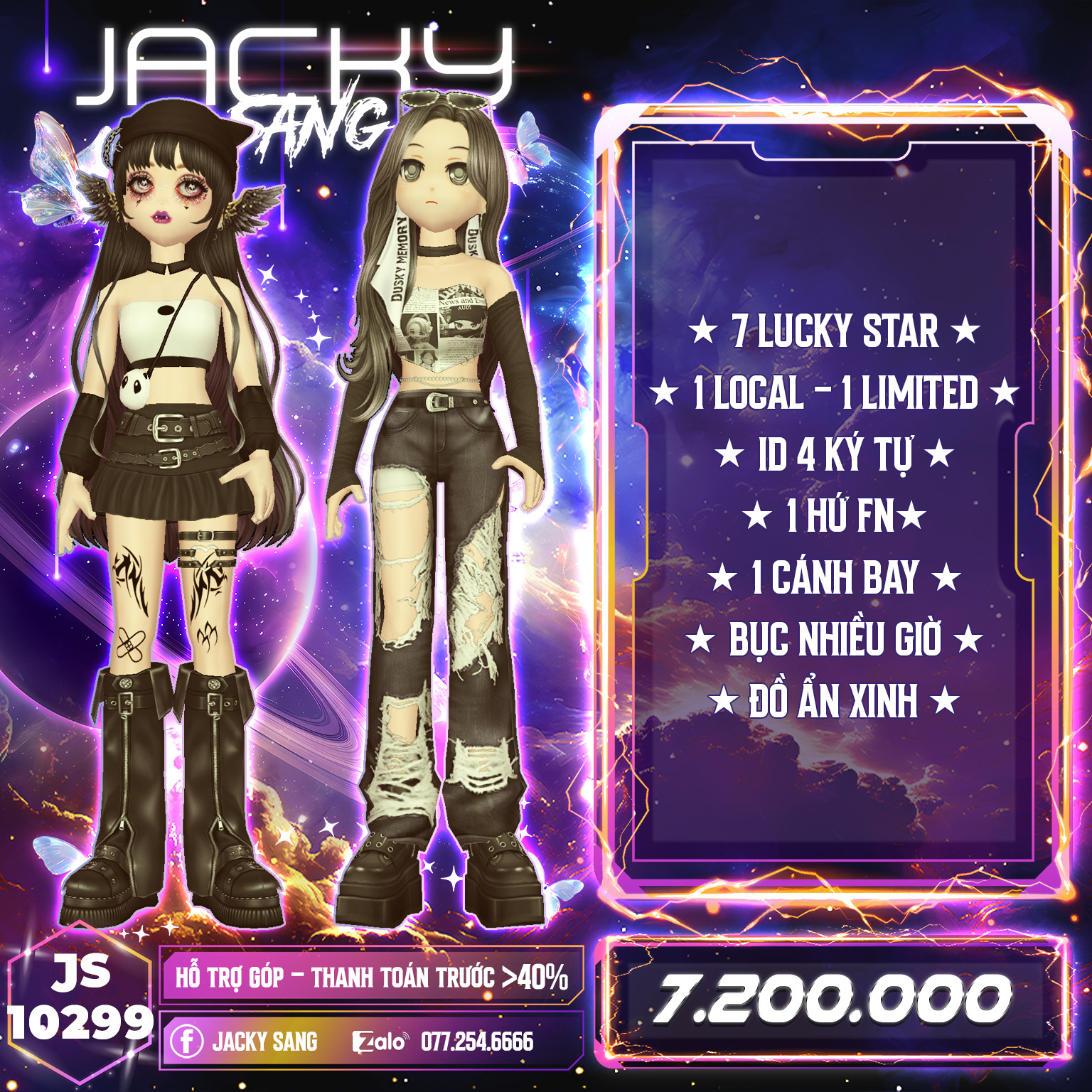 MS: 10299 +10 ảnh Level 20 Local 1 Icon 0 Special 0 Lucky 7 Thiết kế 0 Giới tính Nữ Đầy Đủ Thông Tin 7,200,000đ 6,200,000đ XEM Ở FB