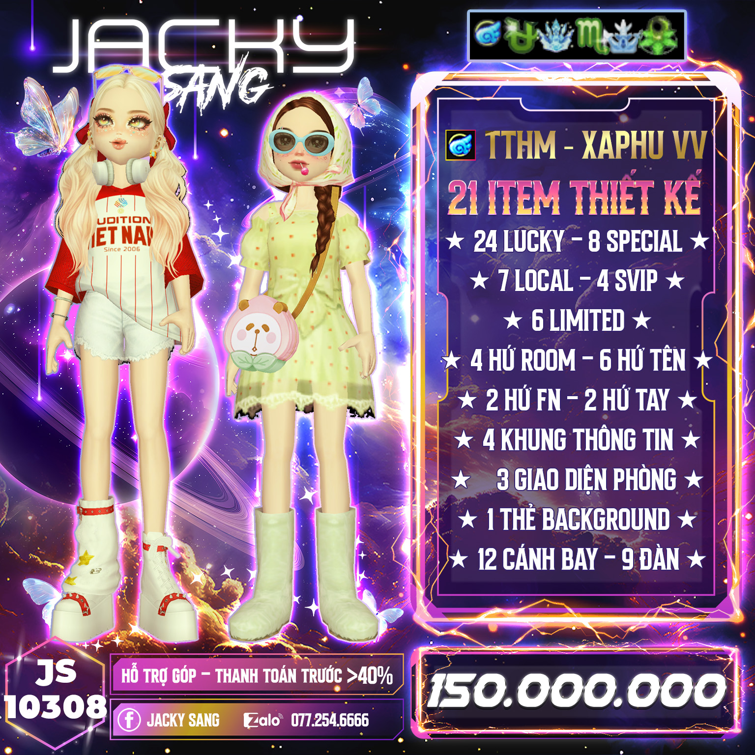 MS: 10308 +16 ảnh Level 15 Local 7 Icon 6 (TTHM) Special 8 Lucky 24 Thiết kế 21 Giới tính Nữ Đầy Đủ Thông Tin 150,000,000đ 140,000,000đ XEM Ở FB