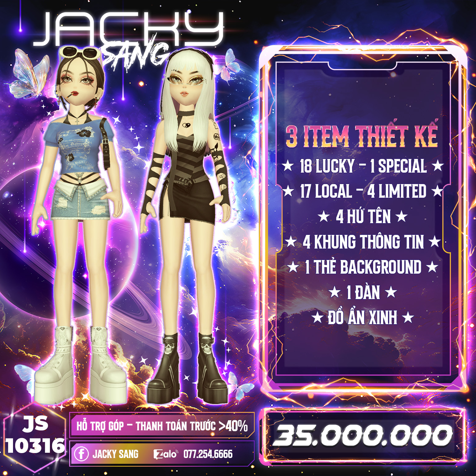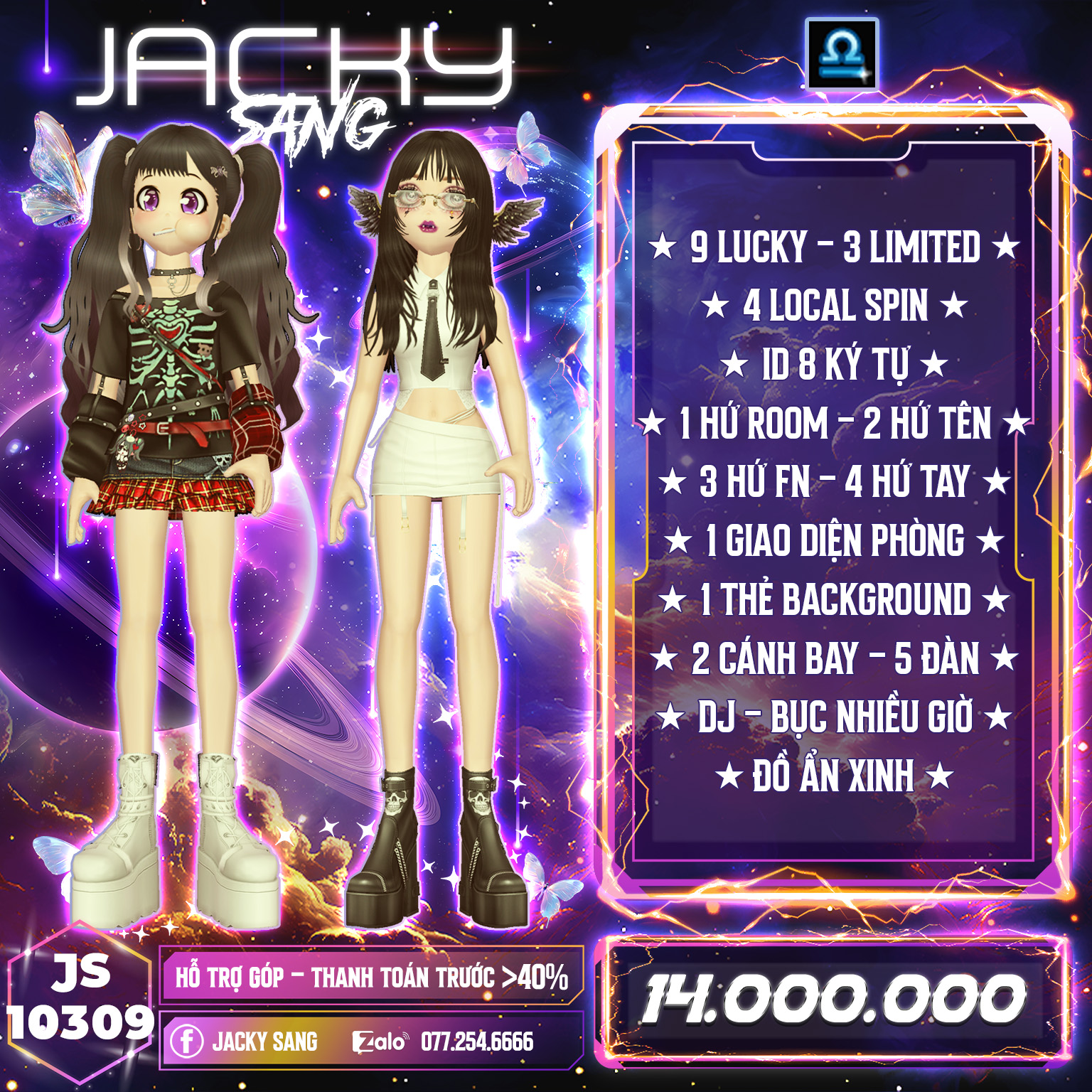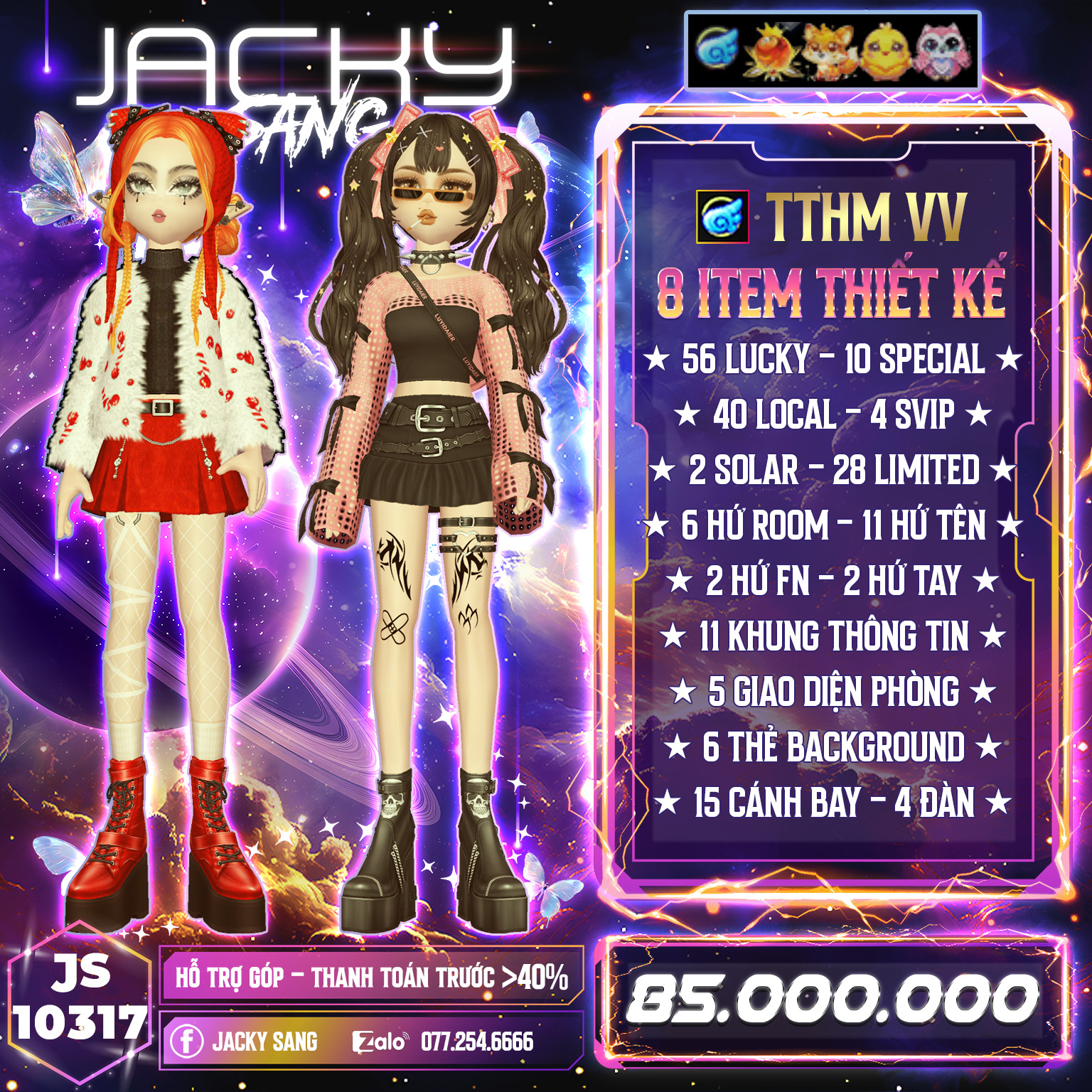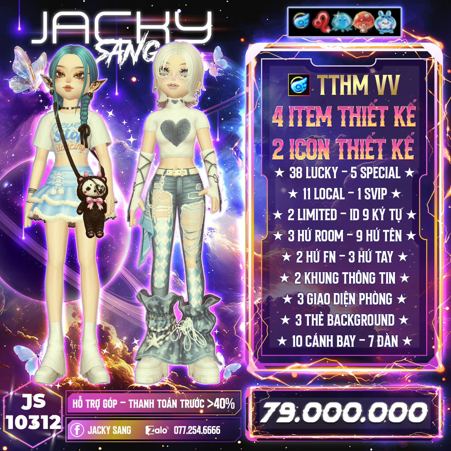 MS: 10317 +19 ảnh Level 27 Local 40 Icon 5 (TTHM) Special 40 Lucky 56 Thiết kế 8 Giới tính Nữ Đầy Đủ Thông Tin 85,000,000đ XEM Ở FB