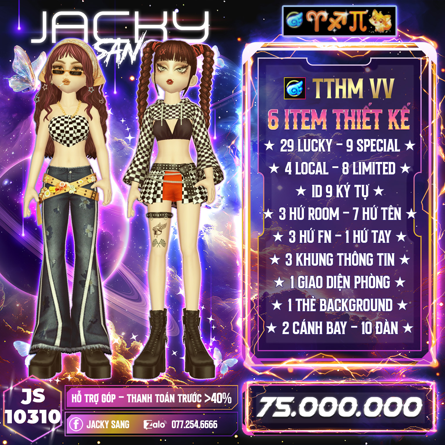 MS: 10310 +16 ảnh Level 5 Local 4 Icon 5 (TTHM) Special 9 Lucky 29 Thiết kế 6 MẶT Giới tính Nữ Đầy Đủ Thông Tin 75,000,000đ XEM Ở FB