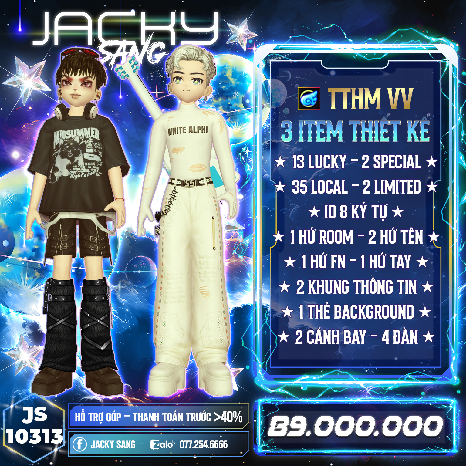 MS: 10303 +36 ảnh Level 13 Local 0 Icon 0 Special 0 Lucky 0 Thiết kế 0 Giới tính Nam Đầy Đủ Thông Tin 600,000đ XEM TỦ ĐỒ XEM Ở FB