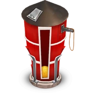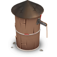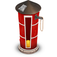 The appearance of the silo changes as the player upgrades it. Its final appearance is displayed when the silo can store at least 300 items.