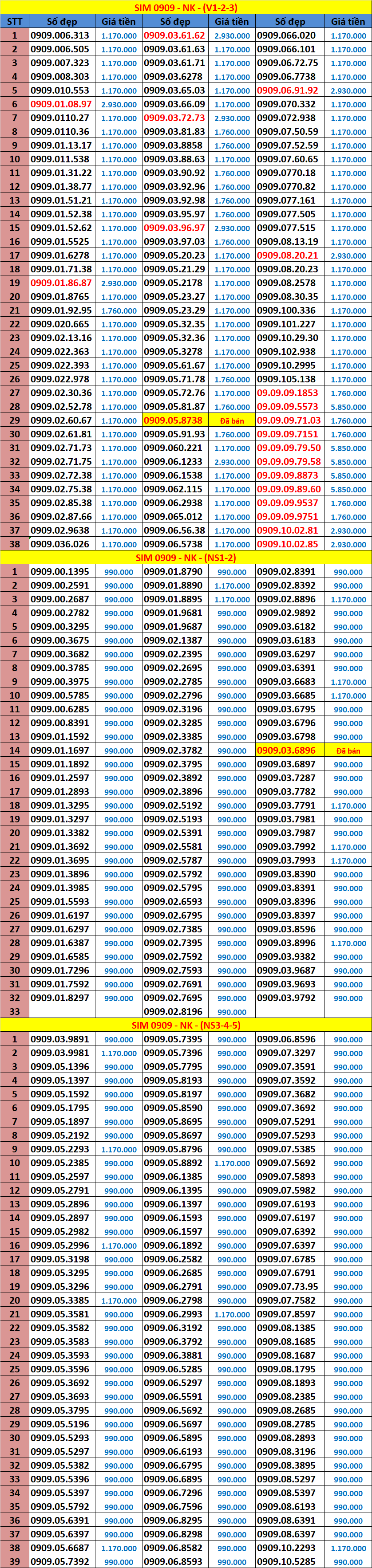 - Sim số đẹp Mobifone - Sim 0909 List 1