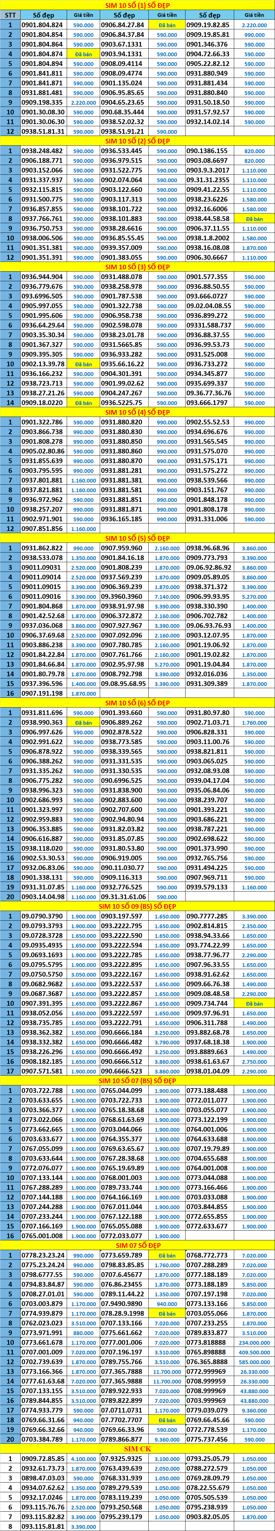 SIM SỐ ĐẸP VIETTEL đầu 09, Số Tiến, Dễ Nhớ, Năm Sinh, Thần Tài ...