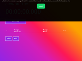 cronometro.comillisecondi. numeri grandi. memorizza i tempi intermedi e il tempo totale. aggiungi le note e stampa i tempi. il cronometro online più preciso del web!