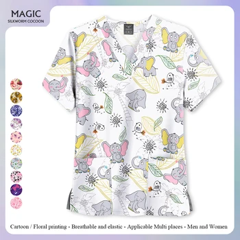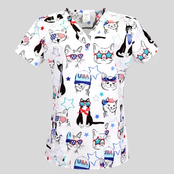 Pet Nursing Uniform Women's Working Clothes Scrub Top with Two Pockets Cartoon Printing V-Neck Medical Short Sleeved Tees Blouse 209,688 ₫ (5.0)