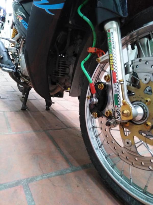 Dàn chân mỏng manh với bánh size cực nhỏ giúp trọng lượng xe giảm xuống để gia tốc nhanh hơn, hệ thống phanh được nâng cấp với đĩa Yaz kết hợp cùng heo đồ chơi qua sự hỗ trợ của pas nhôm CNC chạy máy cho độ chính xác cực cao.