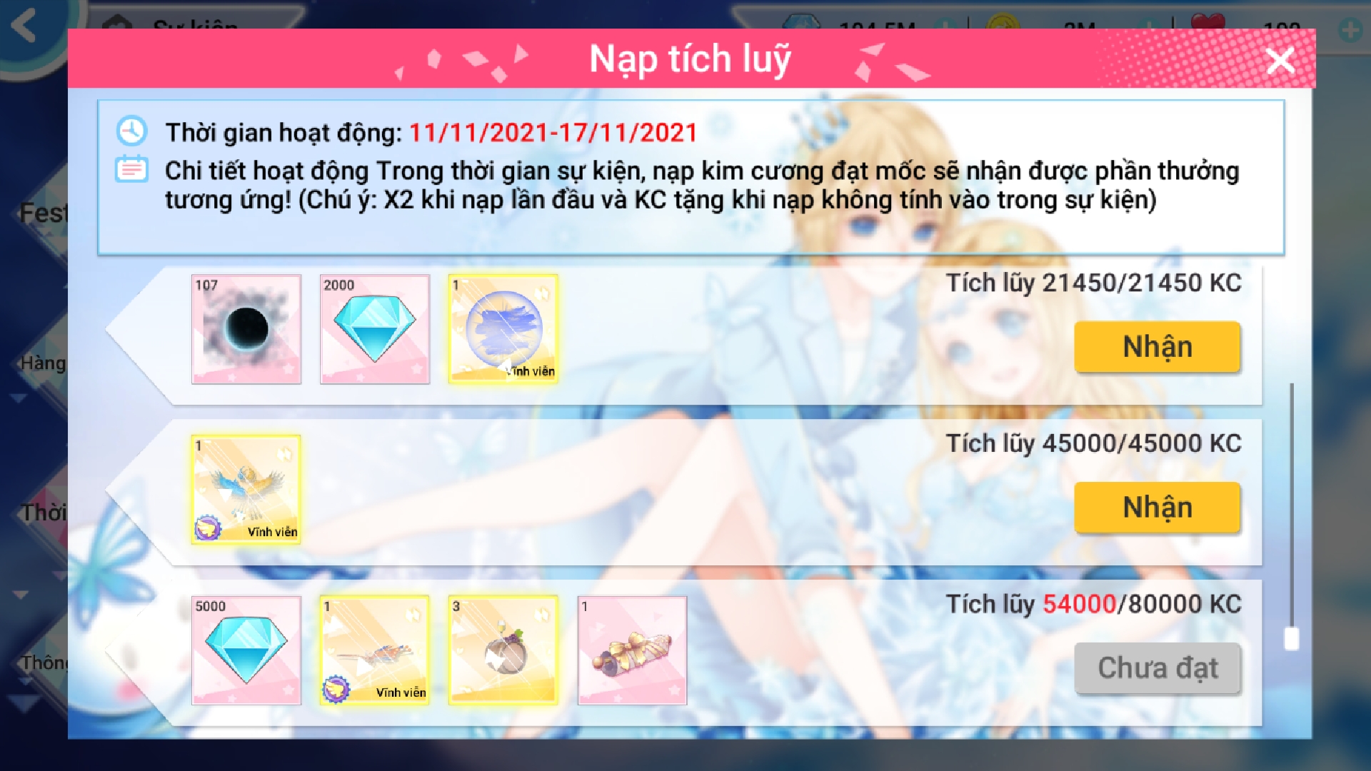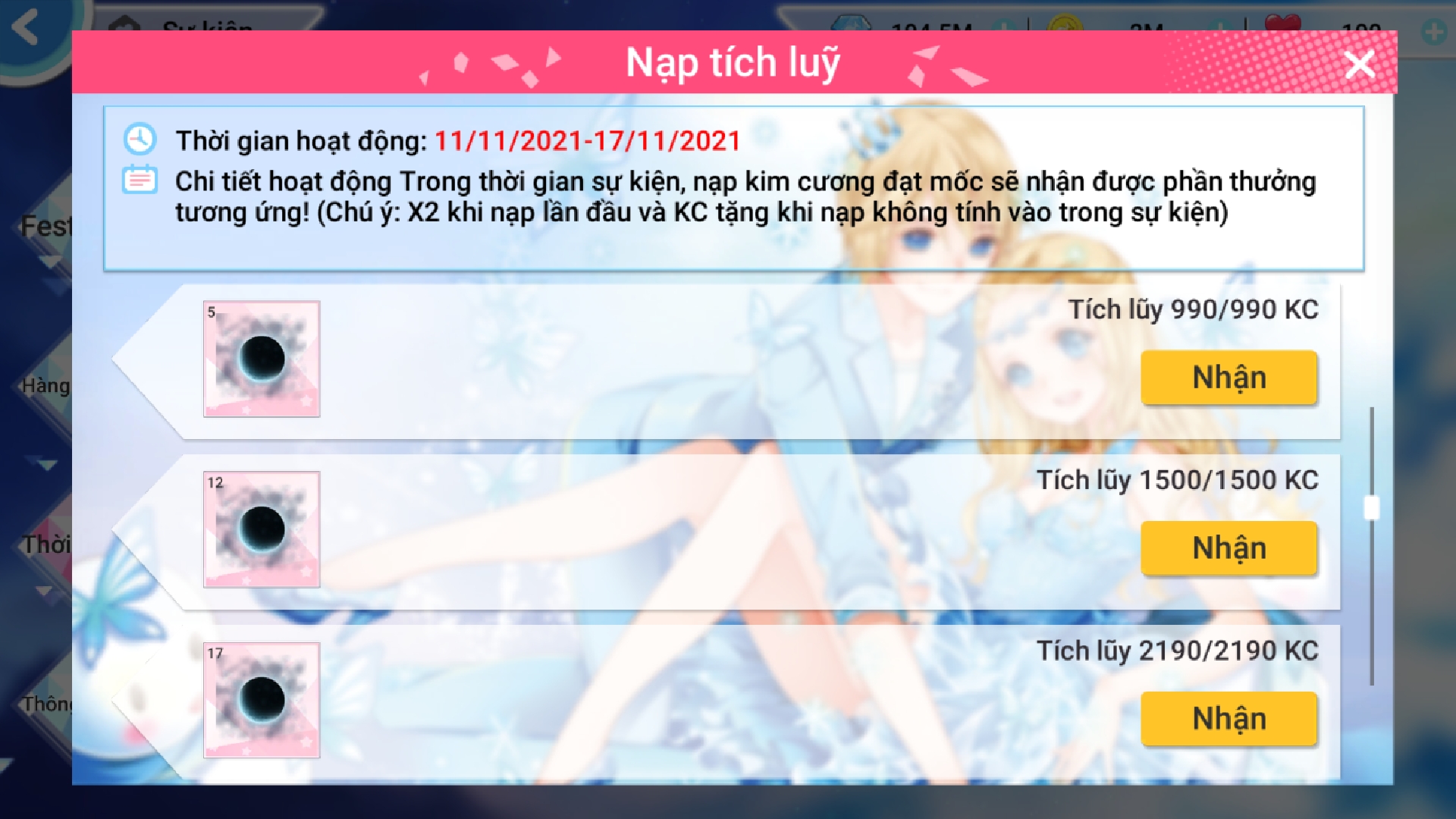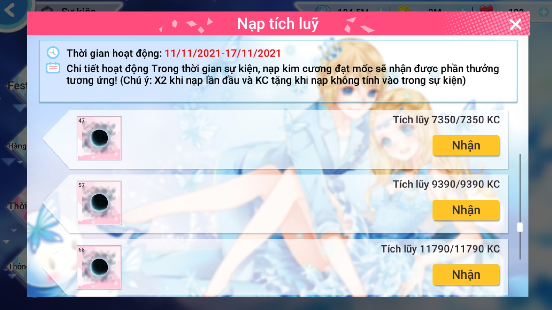 THỂ LỆ: Người chơi tích lũy nạp trong thời gian diễn ra sự kiện, khi đạt mốc nhận thưởng tương ứng.