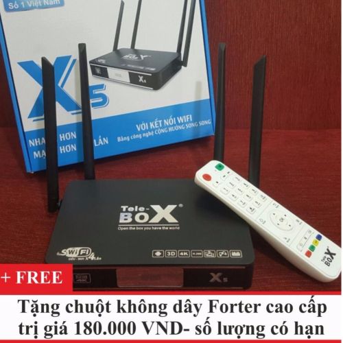 - Smart android tivi box TeleBOX X5 4 râu kèm chuột không dây Forter thu wifi cực khỏe
