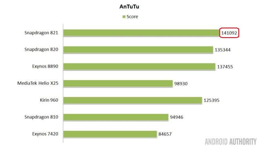 Kết quả AnTuTu khẳng định rõ ràng hơn rằng, tất cả các bộ xử lý của năm nay đều nhanh hơn năm ngoái. Ngoài ra, ta thấy có 4 bộ xử lý có điểm số lớn hơn 12.000 bao gồm: Snapdragon 820 và 821, Exynos 8890 và Kirin 960. Điểm số của chúng cao hơn bộ xử lý Snapdragon 810 của năm ngoái ít nhất 30%. Cuối cùng, rõ ràng Snapdragon 821 là người chiến thắng ở đây, nhưng Exynos và Kirin cũng không thua kém nhiều.