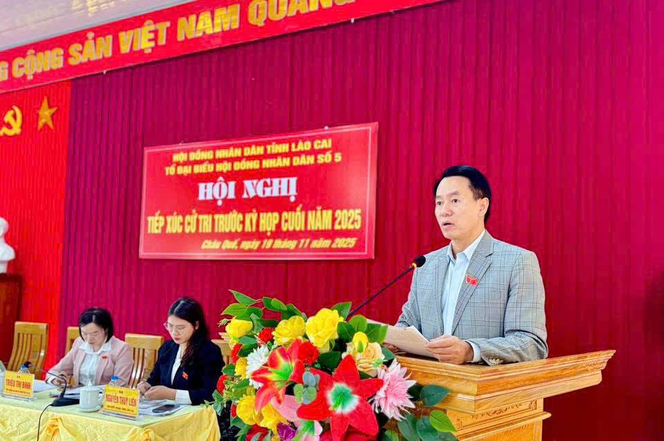 TỔ ĐẠI BIỂU SỐ 5 HĐND TỈNH LÀO CAI TIẾP XÚC CỬ TRI TẠI XÃ CHÂU QUẾ VÀ LÂM GIANG TRƯỚC KỲ HỌP CUỐI NĂM 2025 Sáng ngày 19/11/2025, Tổ đại biểu số 5, Hội đồng nhân dân tỉnh Lào Cai, do đồng chí Luyện Hữu... Văn phòng Sở TỔ ĐẠI BIỂU SỐ 5 HĐND TỈNH LÀO CAI TIẾP XÚC CỬ TRI TẠI XÃ CHÂU QUẾ VÀ LÂM GIANG TRƯỚC KỲ HỌP CUỐI... Sáng ngày 19/11/2025, Tổ đại biểu số 5, Hội đồng nhân dân tỉnh Lào Cai, do đồng chí Luyện Hữu... - Thường trực HĐND tỉnh Lào Cai khảo sát việc triển khai Nghị quyết số 71-NQ/TW của Bộ Chính trị về...