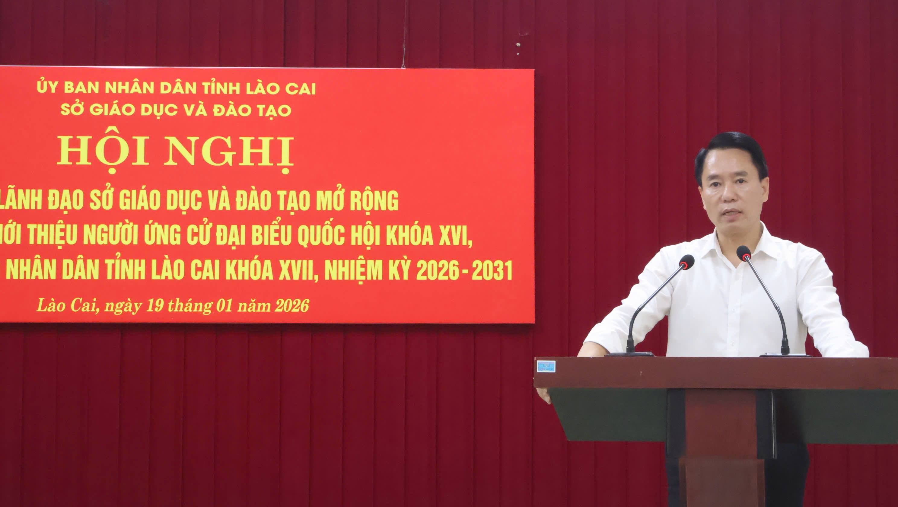 Sở Giáo dục và Đào tạo Lào Cai tổ chức Hội nghị Ban lãnh đạo mở rộng giới thiệu người ứng cử đại biểu Quốc hội, HĐND tỉnh Chiều ngày 19/01/2026, tại Hội trường tầng 4, Sở Giáo dục và Đào tạo (GD&ĐT) tỉnh Lào Cai đã tổ... -