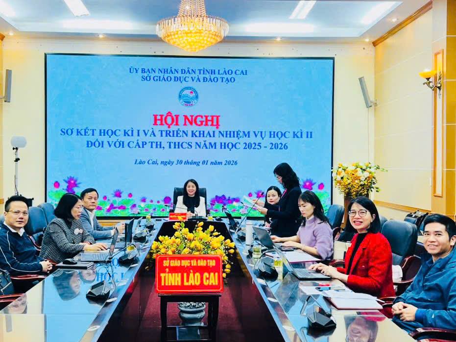 SỞ GIÁO DỤC VÀ ĐÀO TẠO TỈNH LÀO CAI TỔ CHỨC HỘI NGHỊ SƠ KẾT HỌC KÌ I, NĂM HỌC 2025 - 2026 ĐỐI VỚI GIÁO DỤC PHỔ THÔNG Thực hiện Kế hoạch số 21/KH-SGDĐT ngày 22/01/2026 của Sở GDĐT; Hội nghị sơ kết học kì I, năm học... -