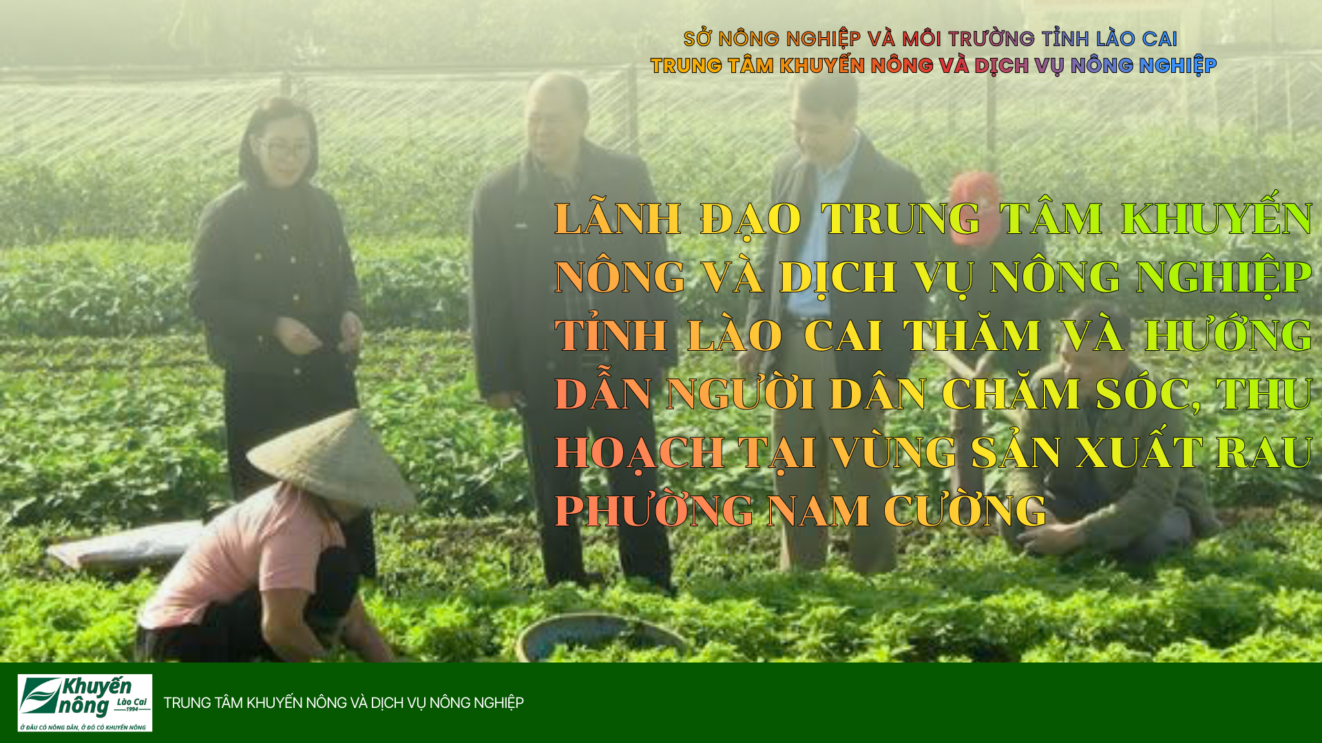 LÃNH ĐẠO TRUNG TÂM KHUYẾN NÔNG VÀ DỊCH VỤ NÔNG NGHIỆP TỈNH LÀO CAI THĂM VÀ HƯỚNG DẪN NGƯỜI DÂN CHĂM SÓC, THU HOẠCH TẠI VÙNG SẢN XUẤT RAU PHƯỜNG NAM CƯỜNG -