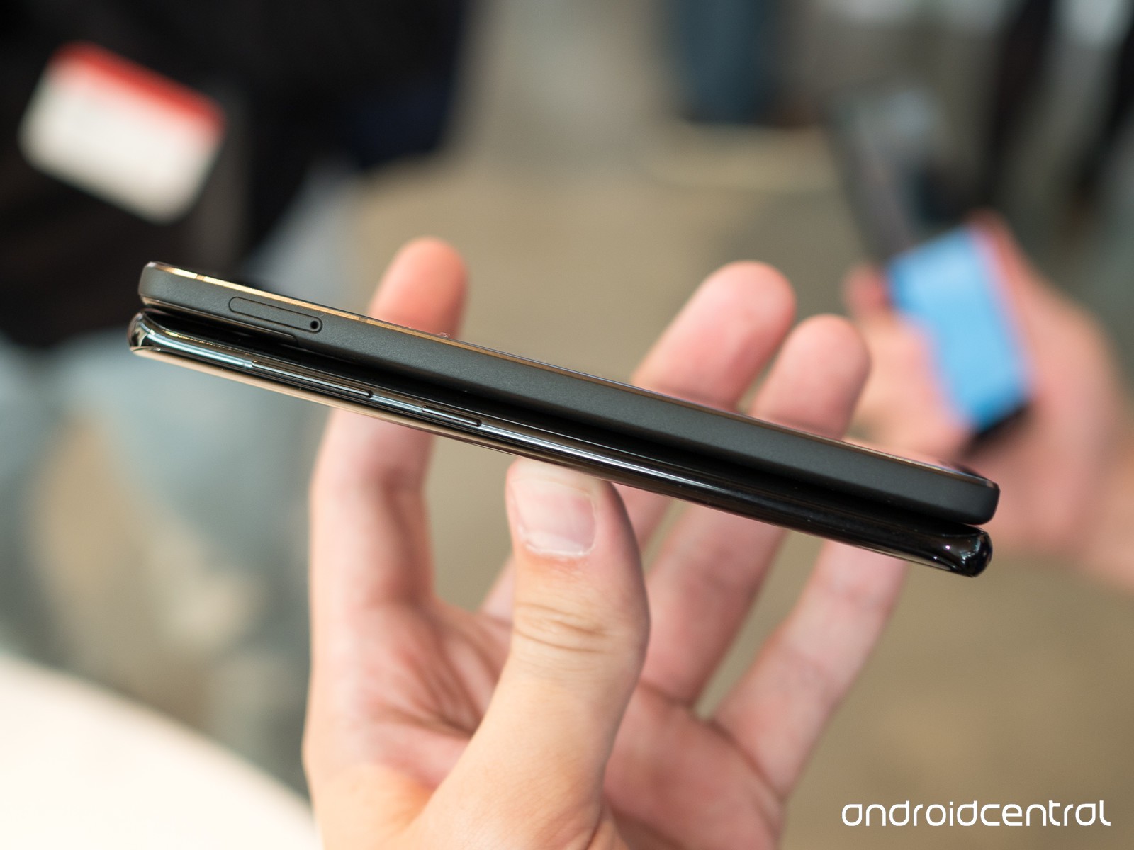 Khi đặt hai máy cạnh nhau, điểm khác biệt về thiết kế đã lộ diện rõ mồn một. Galaxy S8 là mẫu smartphone đầu tiên của Samsung đi theo trào lưu tỷ lệ màn hình mới. Sở hữu kích thước 5.5 inch và tỷ lệ 18,5:9 khá lạ. Thoạt nhìn nếu chỉ mới cầm trên tay và đã quen với các model màn hình 5.5 inch thông thường, bạn có lẽ sẽ rất choáng ngợp.