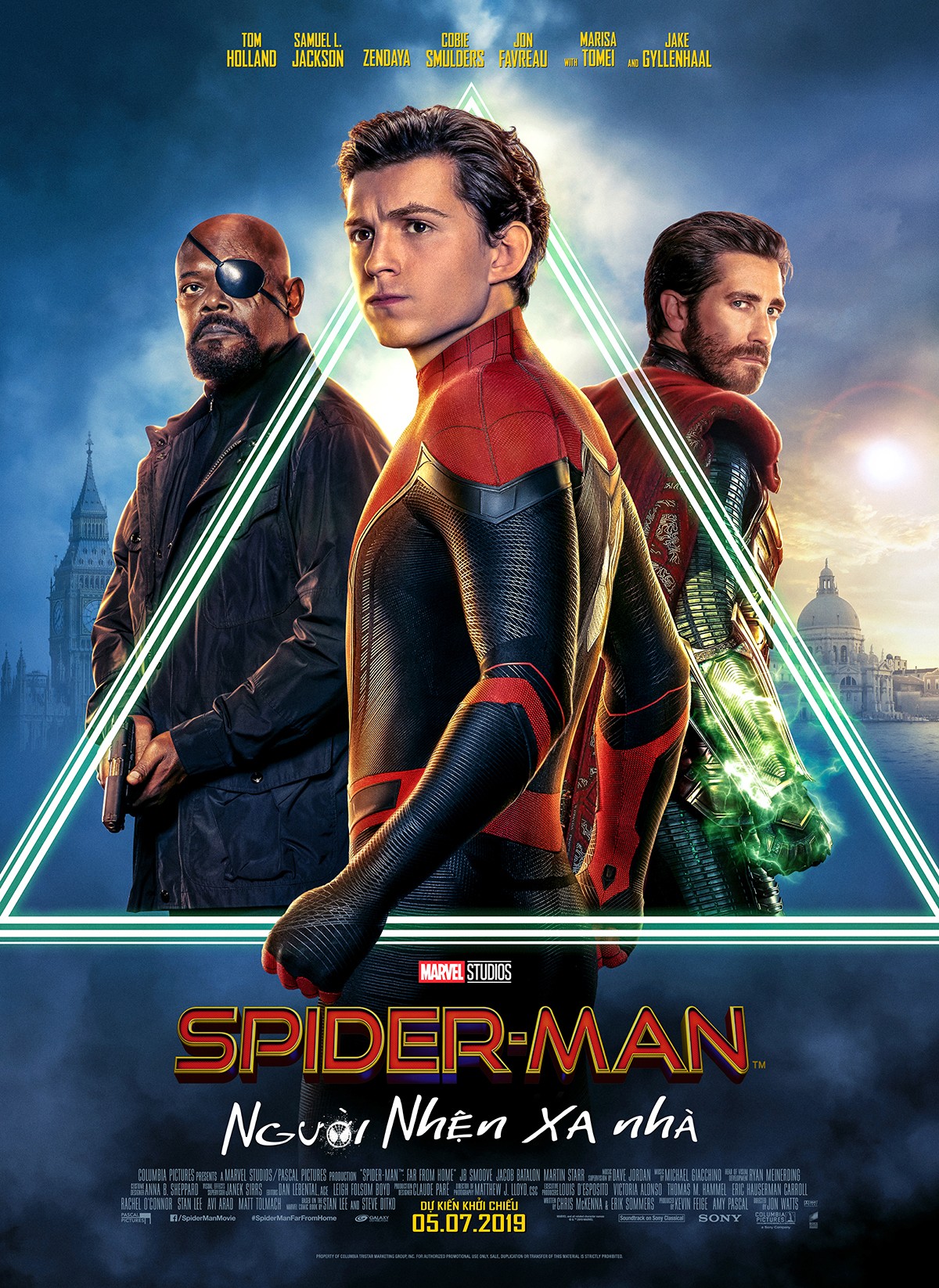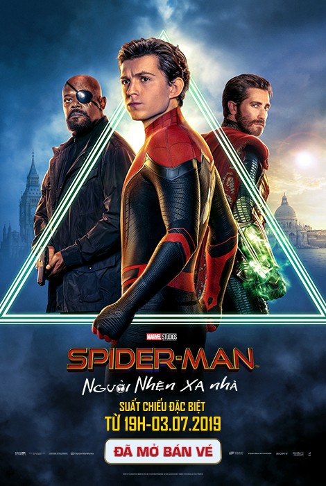 NGƯỜI NHỆN XA NHÀ Đạo diễn:   Jon Watts Diễn viên:   Tom Holland, Zendaya, Jake Gyllenhaal, Marisa Tomei Thể loại:   Hành Động, Khoa Học Viễn Tưởng Khởi chiếu:   05/07/2019 Thời lượng:   135 minutes Ngôn ngữ:   Tiếng Anh và phụ đề tiếng Việt Rated:   C13 - Phim được phổ biến đến người xem từ đủ 13 tuổi trở lên (13+) Rated : C13 Mua vé Chi tiết Chi tiết