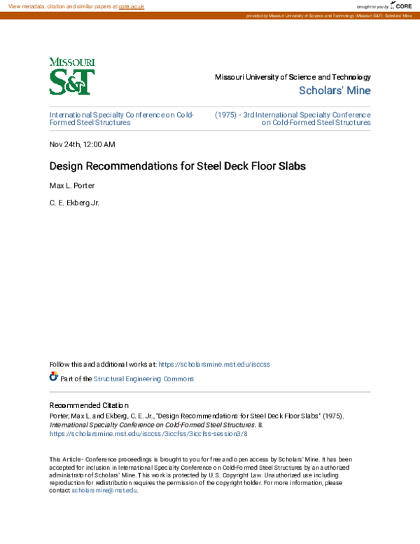 arrow_back_iosDesign Recommendations for Steel Deck Floor SlabsCarl EkbergdownloadDownload free PDFAbstract