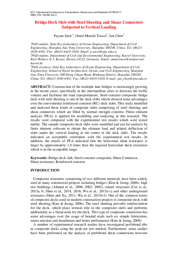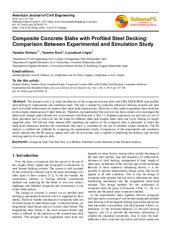 Pratik AtwaldownloadDownload free PDFComposite Concrete Slabs with Profiled Steel Decking: Comparison Between Experimental and Simulation Study