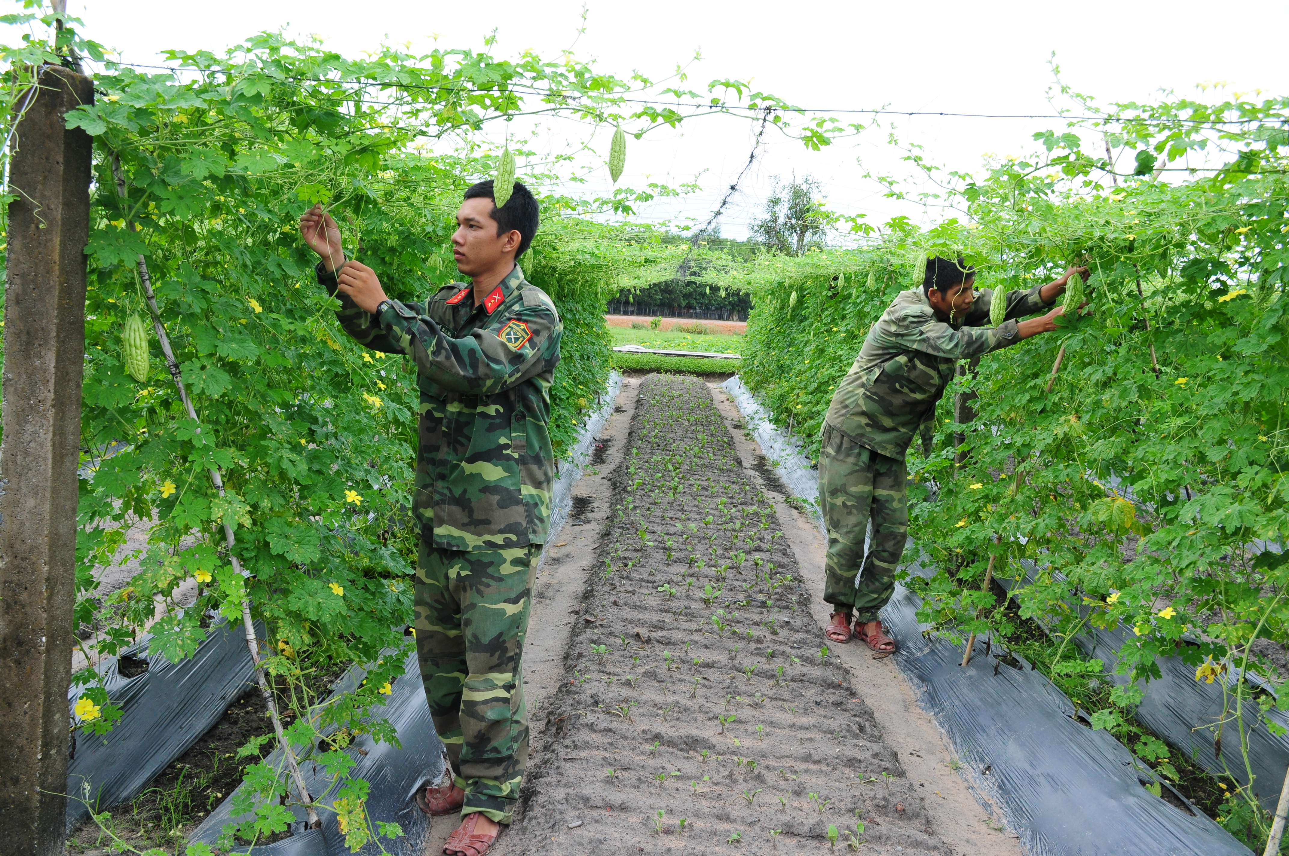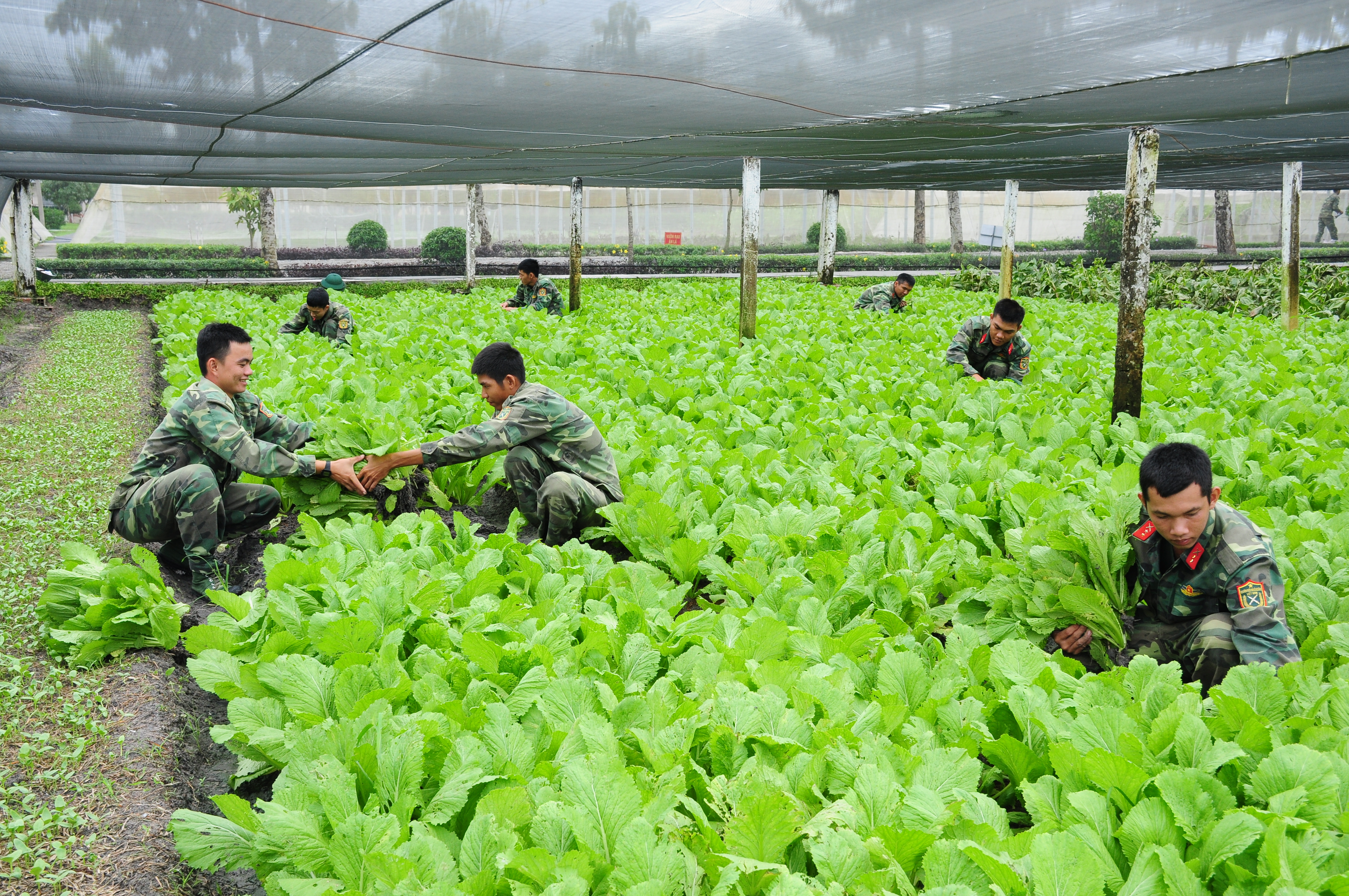 Kinh tế - Hậu cần - Kỹ thuật > Hậu cần Thứ năm, 15/11/2018, 09:02 (GMT+7) 23260 lượt xem Sư đoàn 5 xây dựng ngành hậu cần vững mạnh Đọc bài viết Tạm dừng Tiếp tục Dừng Tốc độ: 1x (QK7 Online) - Trong những năm gần đây, ngành hậu cần Sư đoàn 5 có nhiều chuyển biến tiến bộ, không những đáp ứng nhu cầu thực phẩm hàng ngày cho cán bộ, chiến sĩ, mà còn sẵn sàng phục vụ nhiệm vụ thường xuyên và đột xuất của Sư đoàn trong mọi tình huống. Tây Ninh vốn là nơi có miền nhiệt cao so với các tỉnh miền Đông Nam bộ, thế nhưng, khi bước chân vào doanh trại Sư đoàn 5, chúng tôi lại cảm nhận được không khí trong lành, mát mẻ. Toàn doanh trại phủ một màu xanh tươi mát của cây cổ thụ, cây lấy gỗ, cây kiểng và những vườn trái cây sai trĩu quả. Tham quan khu tăng gia sản xuất tập trung của các đơn vị Sư đoàn 5, chúng tôi bắt gặp một màu xanh ngút ngàn của các loại rau quả. Hàng luống, bờ thửa được quy hoạch gọn gàng, khoa học. Do nguồn nước hạn chế, hệ thống giếng khoan thường xuyên bị hụt nước, Sư đoàn đã triển khai dự trữ nước tại các ao hồ; đồng thời tận dụng nguồn nước từ kênh TN 17 phục vụ tưới tiêu phát triển tăng gia sản xuất. Để xây dựng ngành hậu cần vững mạnh, Sư đoàn 5 đã quy hoạch thống nhất quy trình tăng gia sản xuất khép kín, bền vững theo mô hình: “Vườn, ao, chuồng, giàn, trạm chế biến cơ bản”. Cụ thể, cấp tiểu đoàn gắn khu tăng gia sản xuất với bếp ăn; cấp trung đoàn gắn khu tăng gia sản xuất với trạm chế biến, giết mổ tập trung. Bình luận