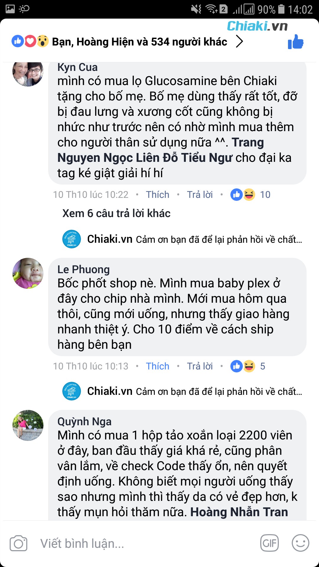 Phản hồi tích cực của khách hàng trên chiaki.vn
