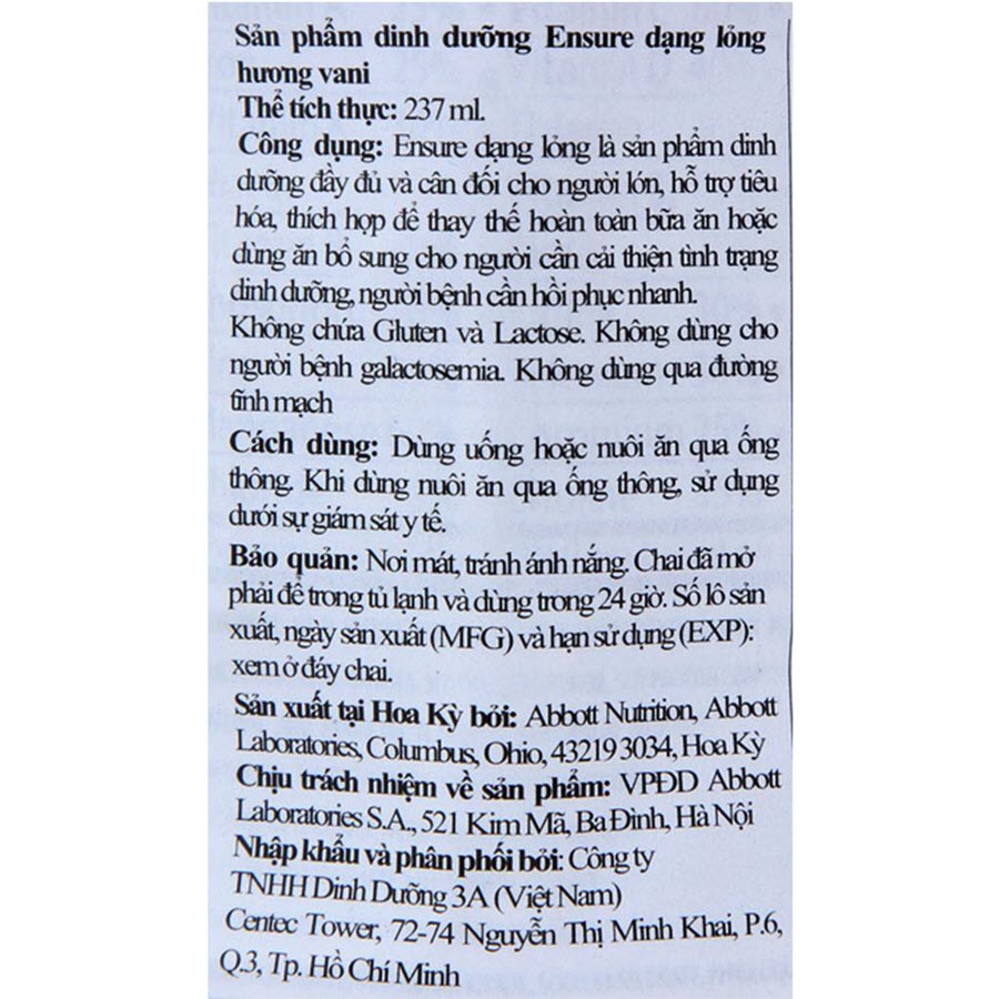 Sữa Bột Pha Sẵn Ensure Original Vani Chai 237ml - Websosanh