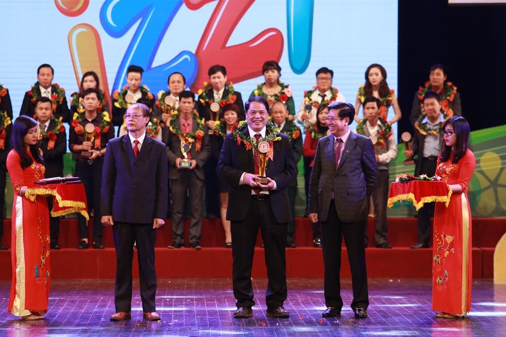 Ông Hà Quang Tuấn - Chủ tịch HĐQT Công ty CP Sữa Hà Nội (Hanoimilk) nhận giải thưởng "Top 10 Thực phẩm Tốt nhất Việt Nam" cho nhãn hàng sữa IZZI |