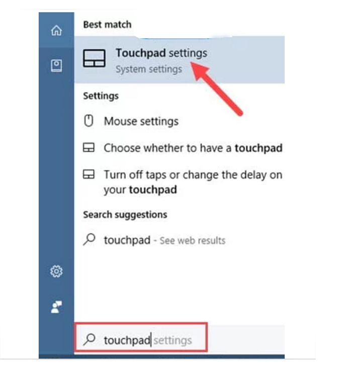 2. Thiết lập Delay cho Touchpad Nếu như đó không hẳn do lỗi liên quan đến phần mềm hay cập nhật, bạn hãy thử tăng mức độ delay khi gõ phím của Touchpad lên xem sao. Tùy theo mức bạn thiết lập delay cao hay thấp sẽ ảnh hưởng đến việc gõ phím của bạn, tất nhiên đây cũng là một trong những phương pháp hạn chế lỗi chuột cảm ứng laptop bị loạn, giúp bạn gõ chữ mà không bị nhảy loạn xa do chạm nhầm vào. Bước 1: Mở Menu Start lên sau đó gõ 'Touchpad ' và truy cập vào Touchpad Settings.