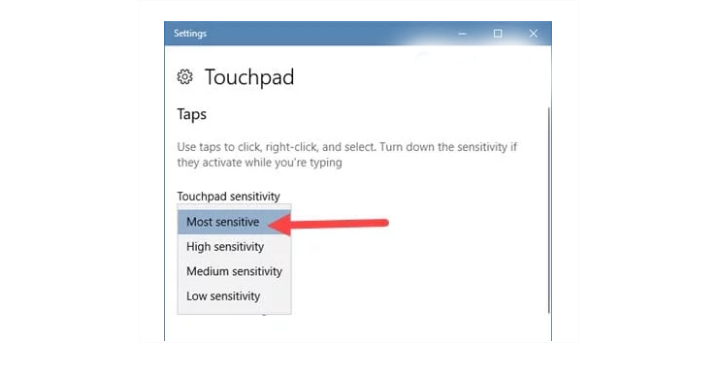 Bước 2: Trong phần Touchpad bạn sẽ thấy ngay có một mục là Tap cho phép bạn điều chỉnh mức độ Delay của chuột ở đây. Nếu bạn chọn Most Sensitive có thể giúp bạn hạn chế lỗi chuột cảm ứng laptop bị loạn.