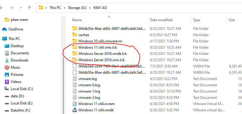 Để khắc phục lổi này các bạn vào thư mục chưa máy ảo của mình và xóa các file .lck là xong.